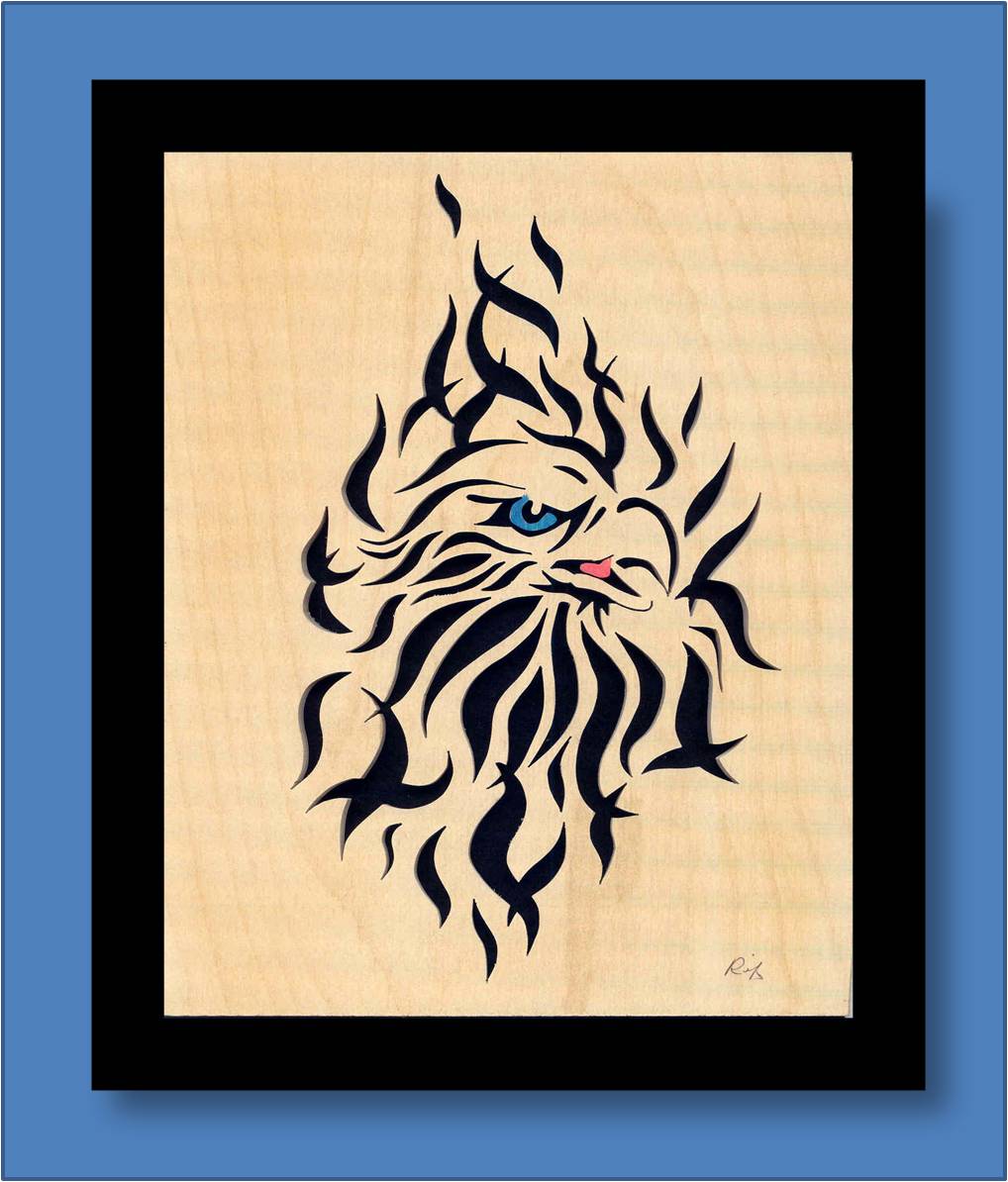 These scroll saw portraits are cut from 1/8" Baltic Birch plywood, backed with black felt, and secured in a standing/wall mount 8" x 10" frame.