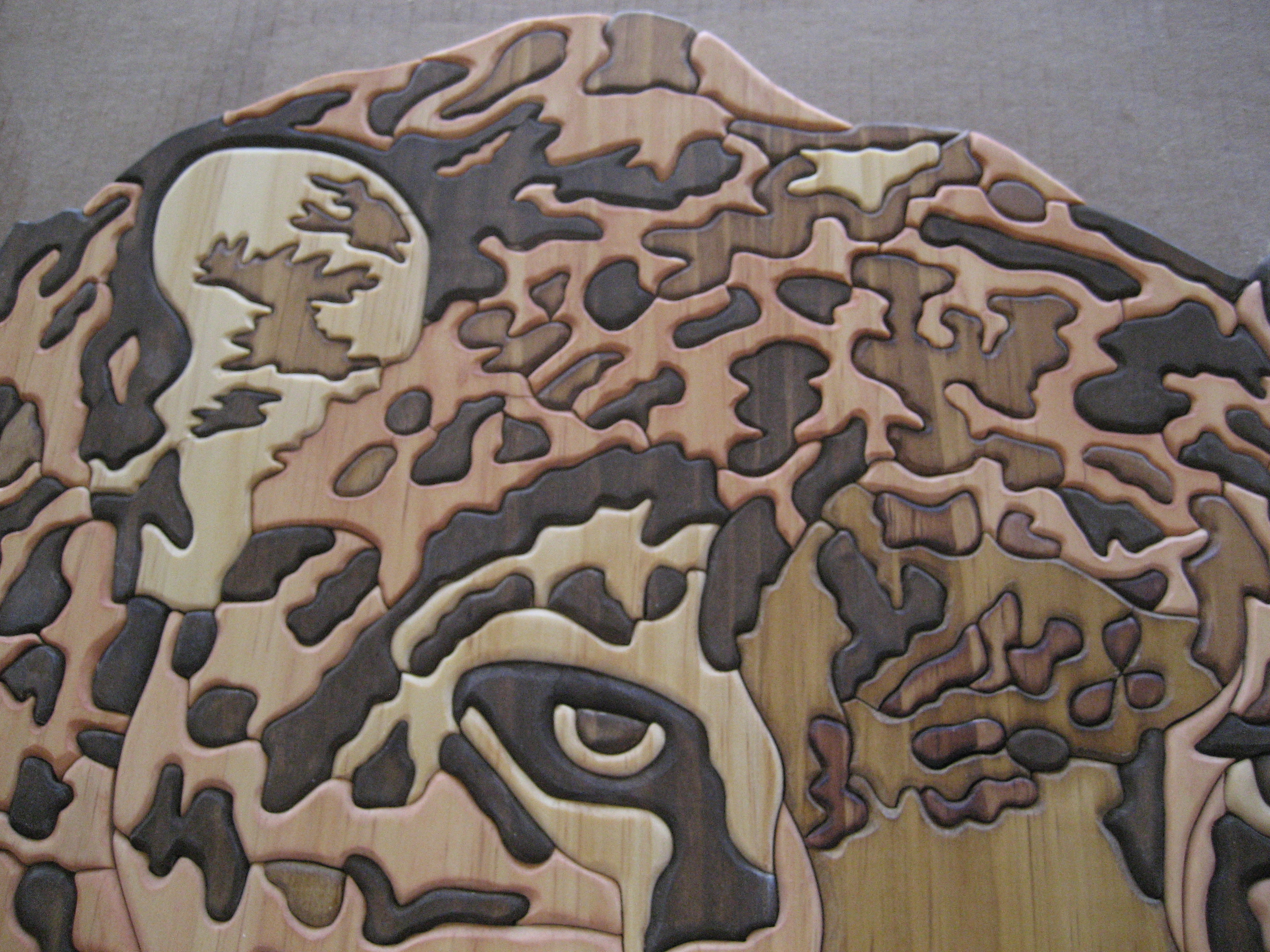 I was never really into Intarsia, primarily because of the cost of all the exotic woods. A client begged me to create a few large scale intarsia figures. I reluctantly agreed only if I could use stains rather than the exotic woods. I call this, "Poor Man's Intarsia."