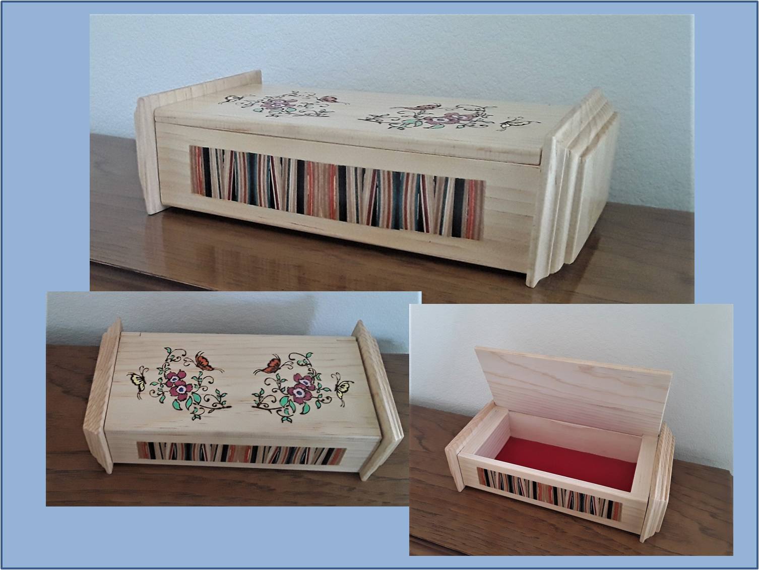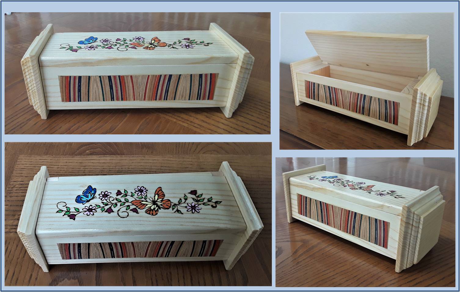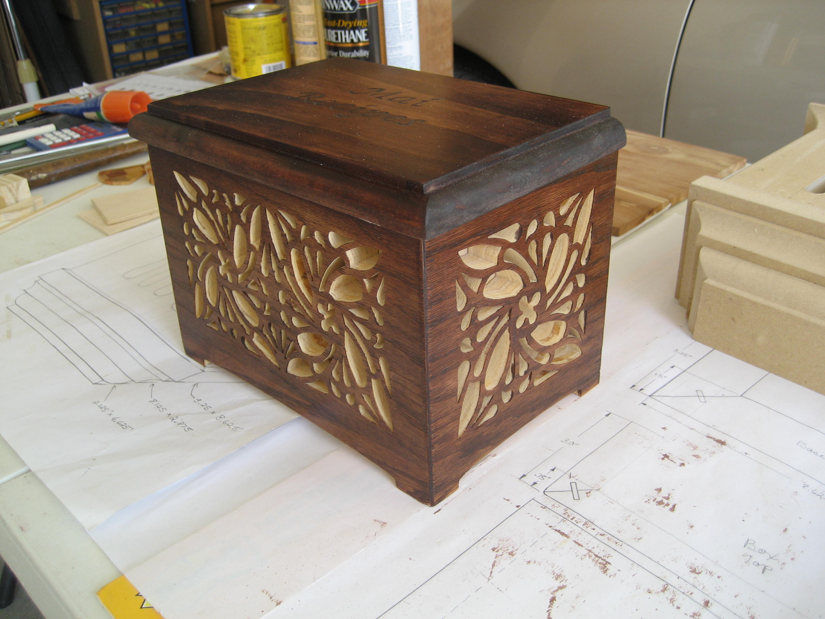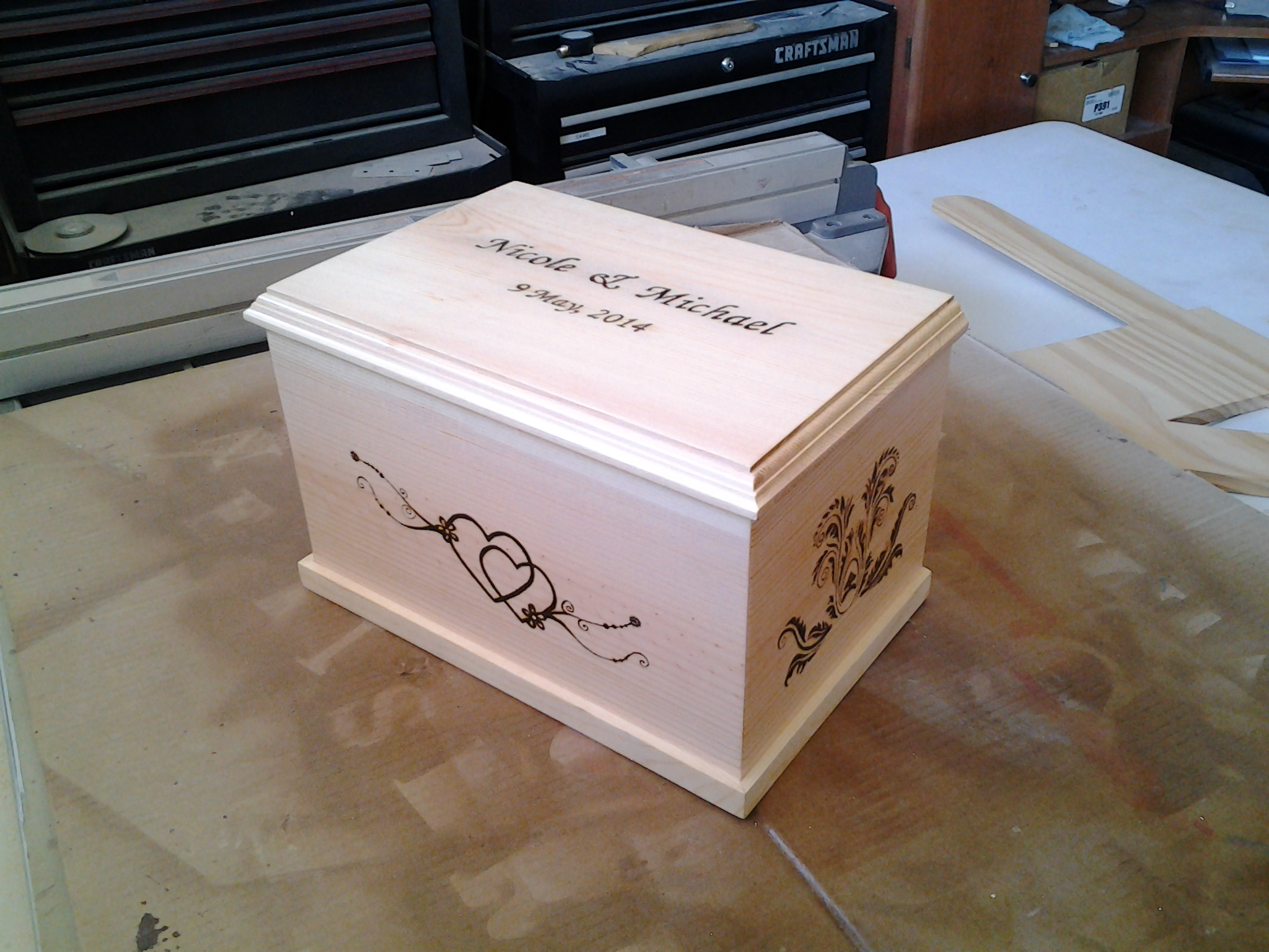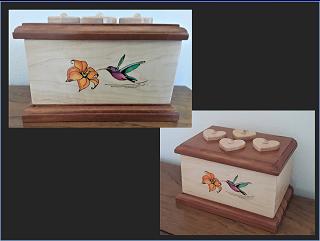 All of the boxes I have made have been to customer specifications as far as size and function.  They have left it up to me to add that artistic touch to the overall design.