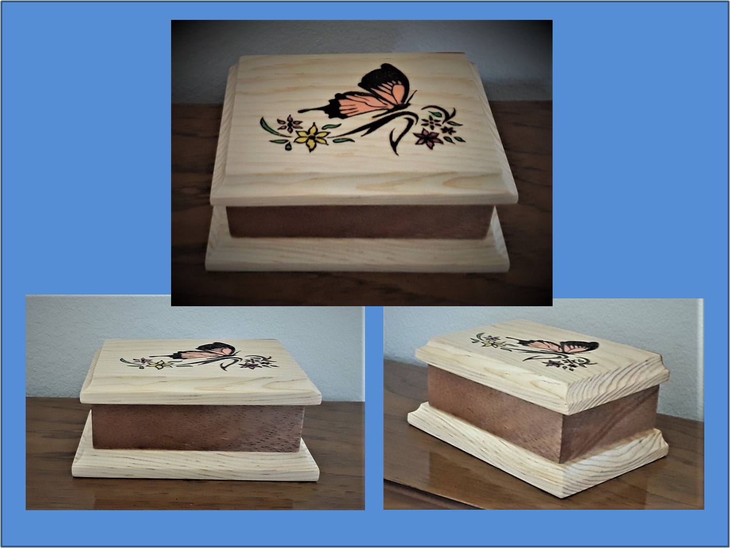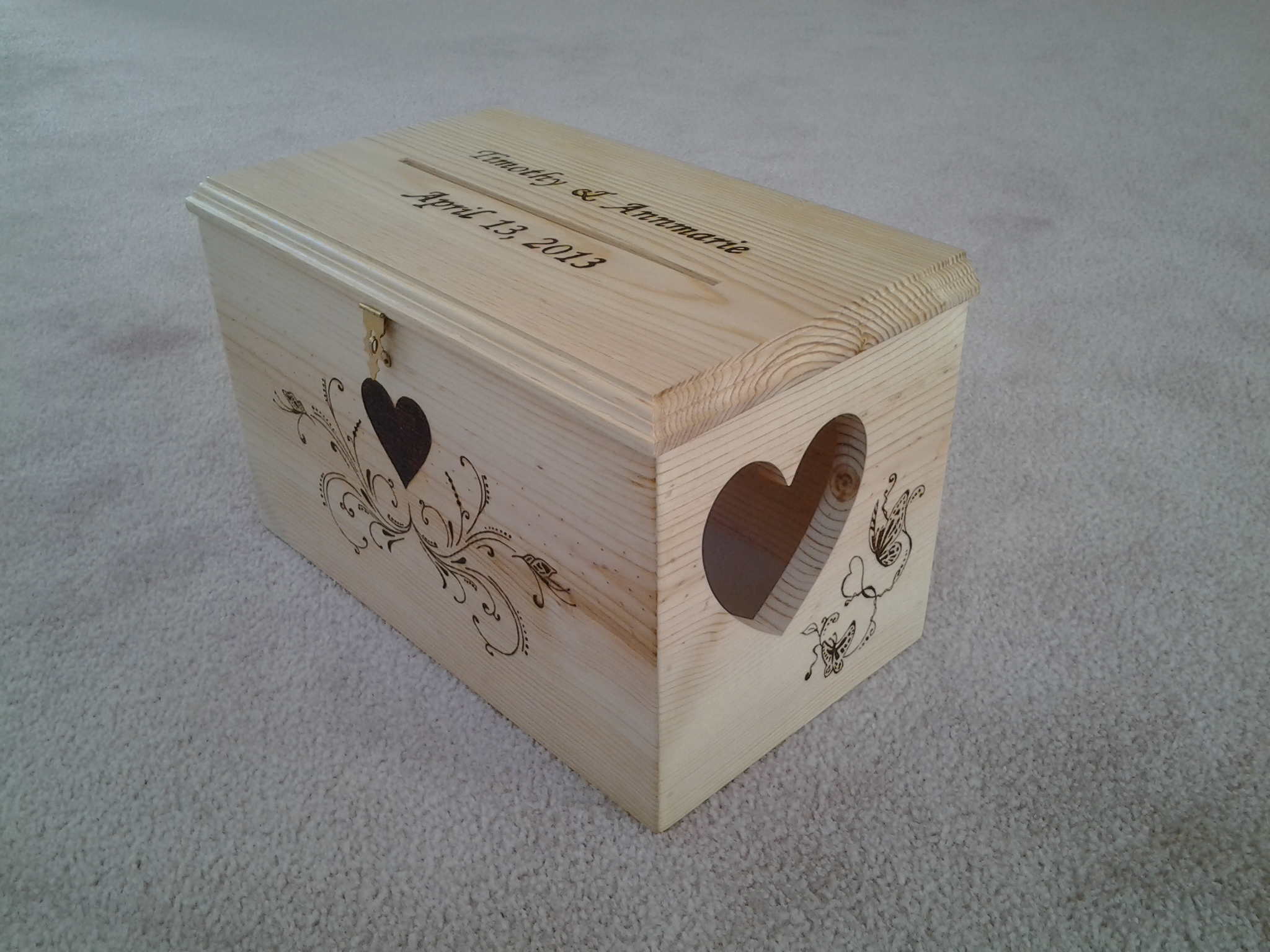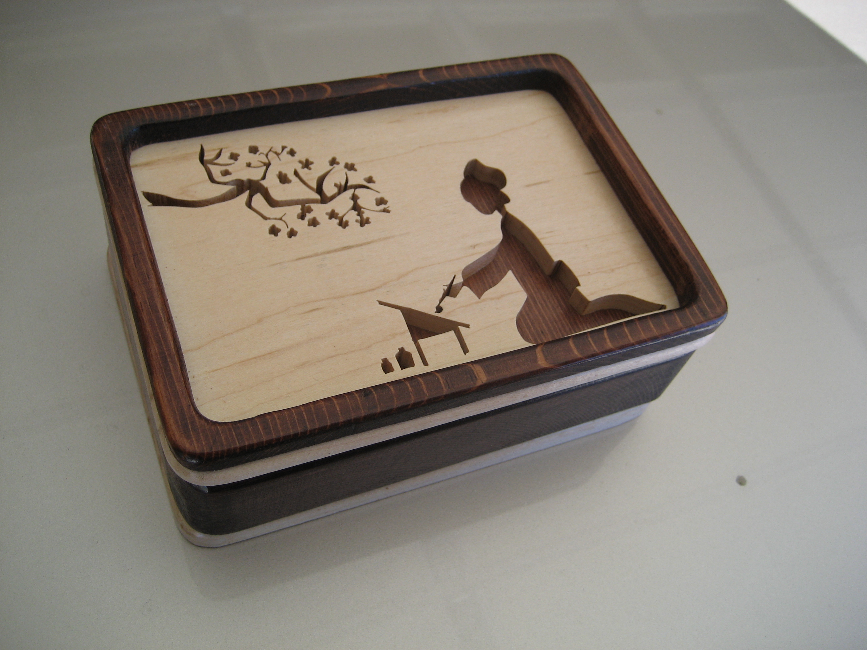 All of the boxes I have made have been to customer specifications as far as size and function.  They have left it up to me to add that artistic touch to the overall design.