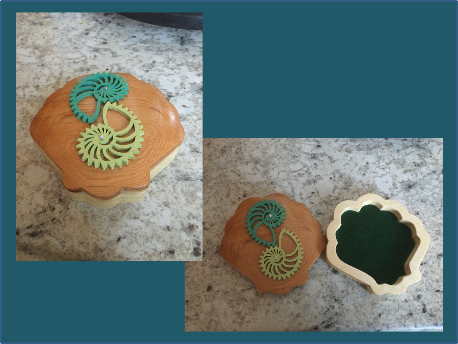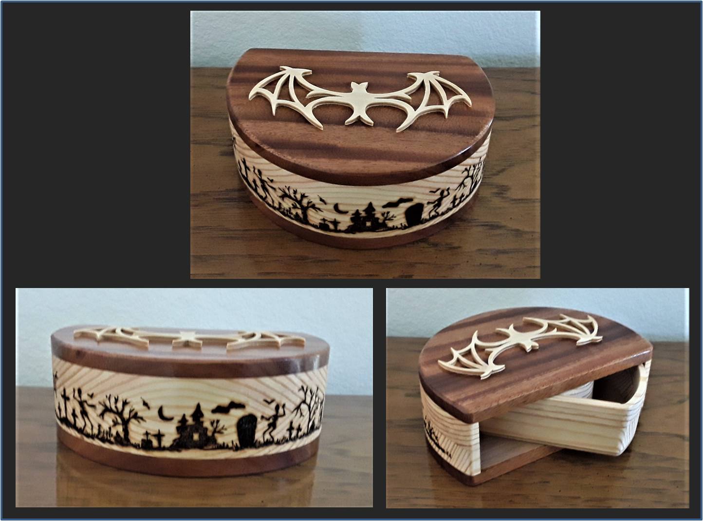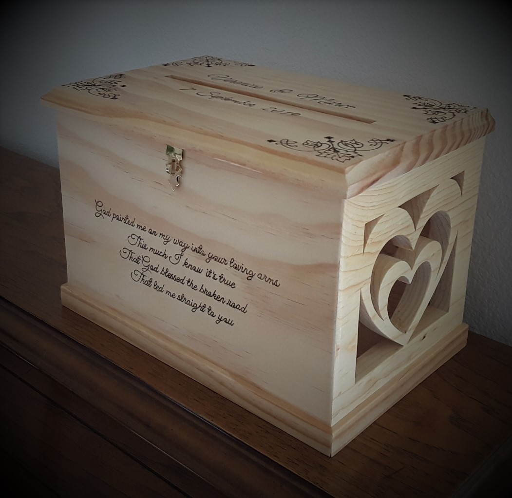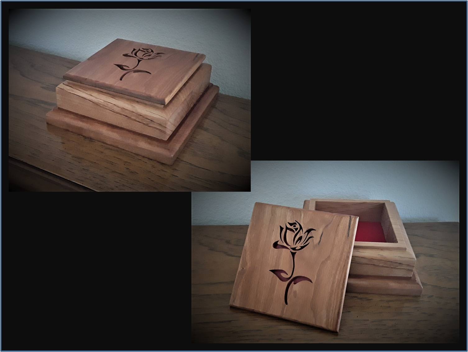 All of the boxes I have made have been to customer specifications as far as size and function.  They have left it up to me to add that artistic touch to the overall design.