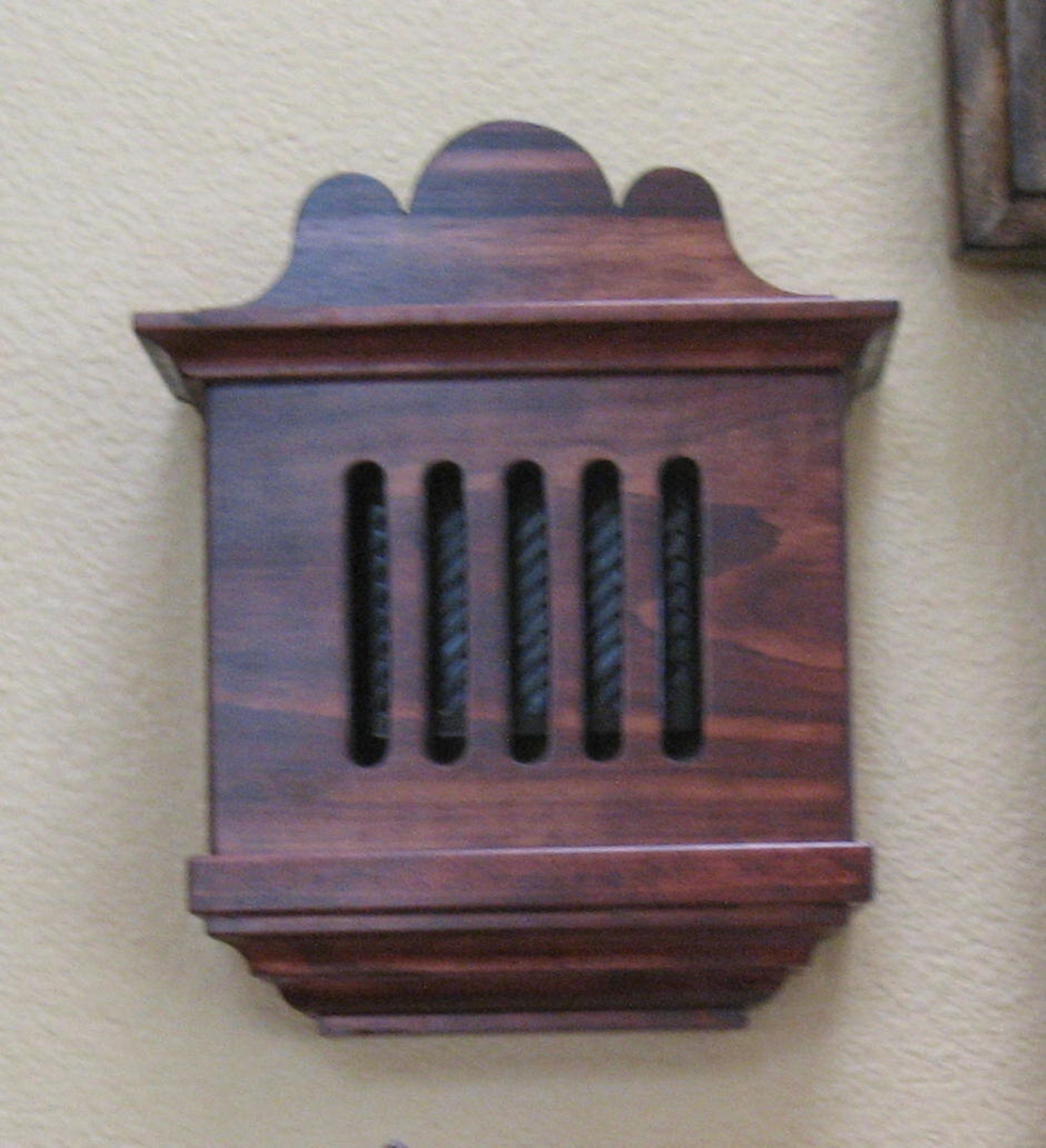 Sized to fit precisely over the plastic door bell housing. I also had to identically match the finish with the color of her other furniture which turned out to be a red mahogany stain.
