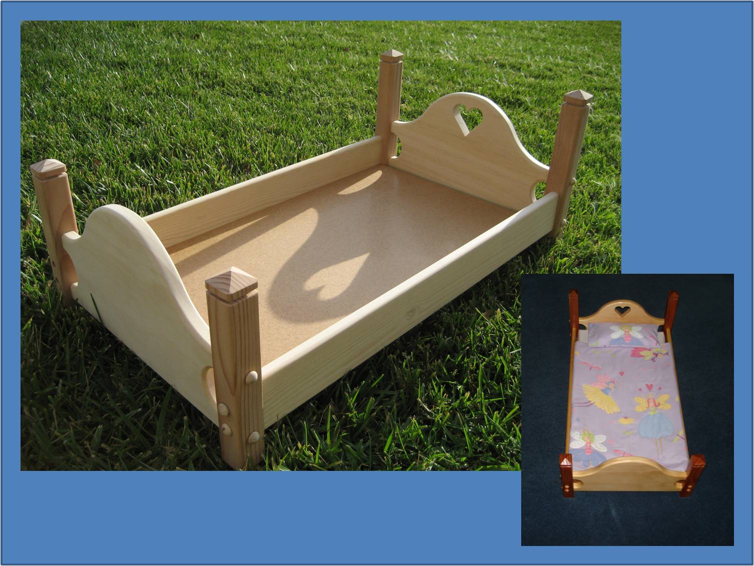 The bed is 12" x 24" with a scrolled heart in the headboard.