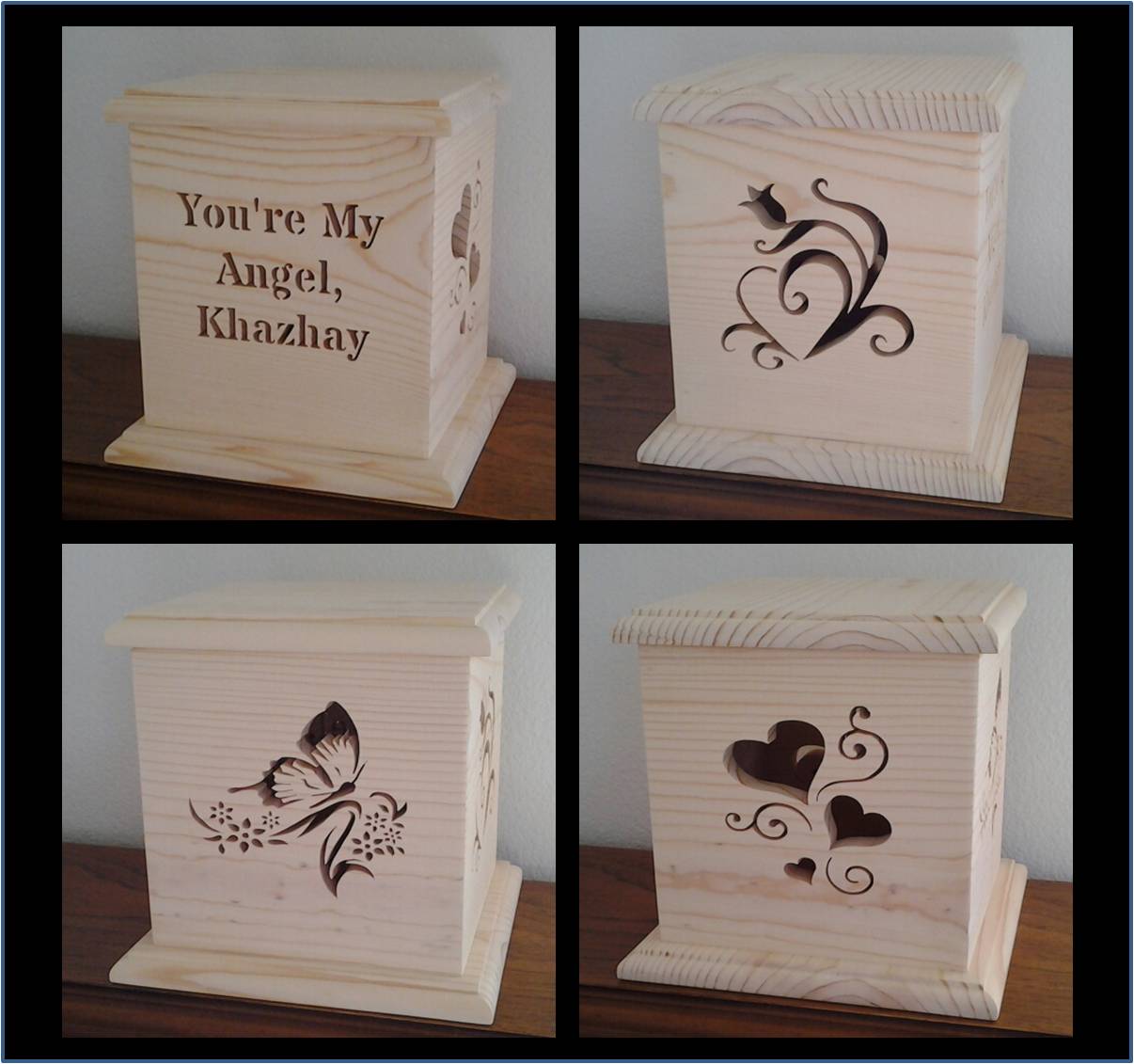 With a battery operated crystal light placed inside it provides four different customized images in rotating colors.