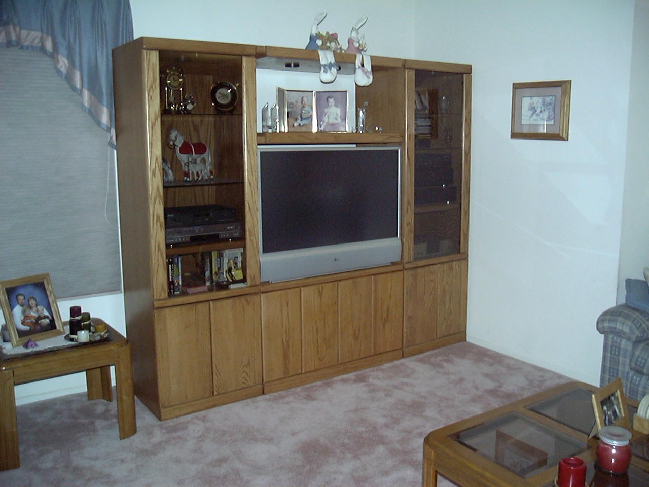 The two side cabinets already existed. She wanted a matching center cabinet for the TV.